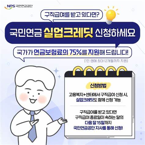 - 보험료 부담 완화: 국가에서 보험료의 75%를 지원해주어 실직 중에도 부담 없이 연금 가입을 유지할 수 있답니다.