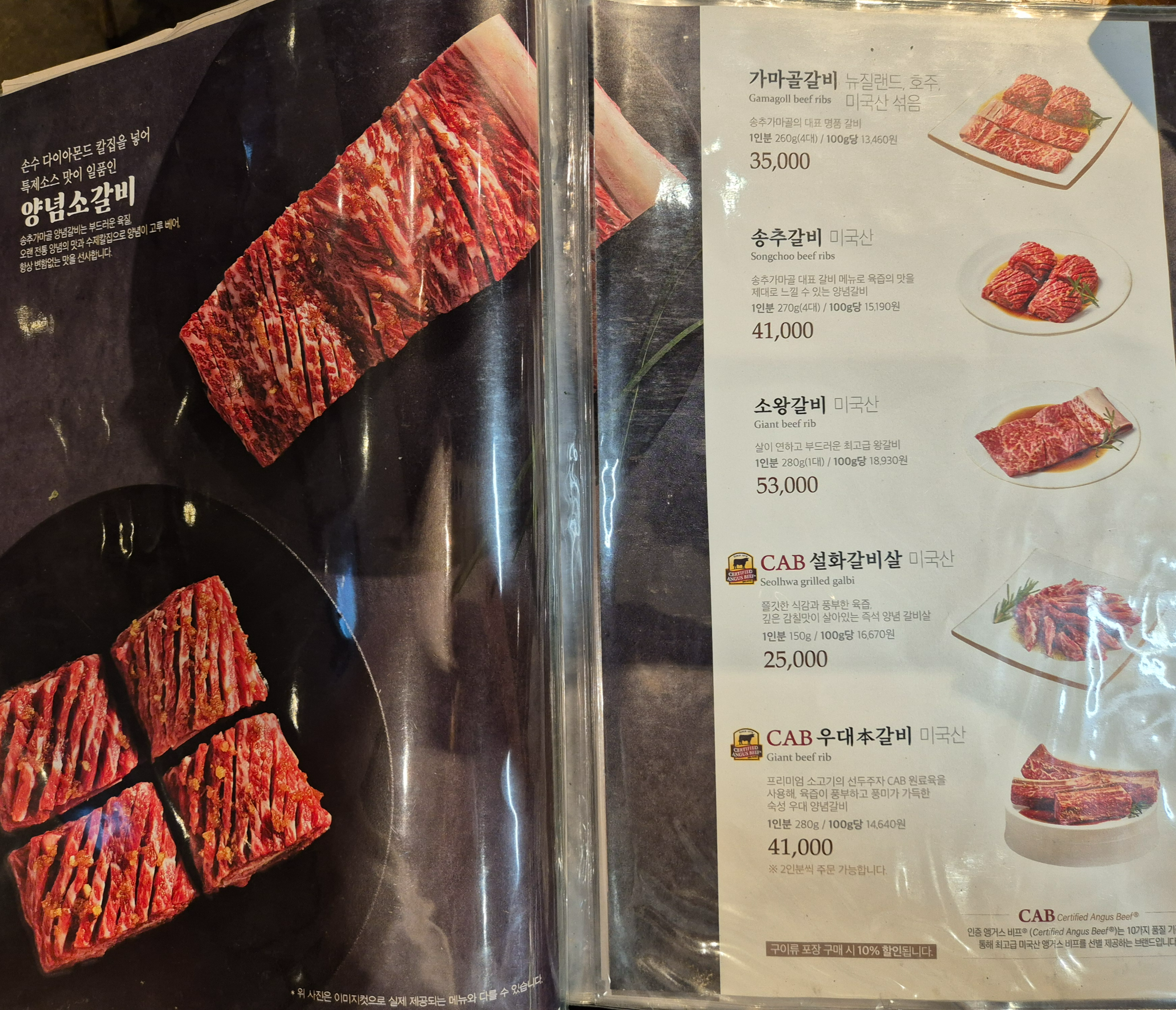 🥩 대표 메뉴 – 양념 소갈비 & 숯불 돼지갈비